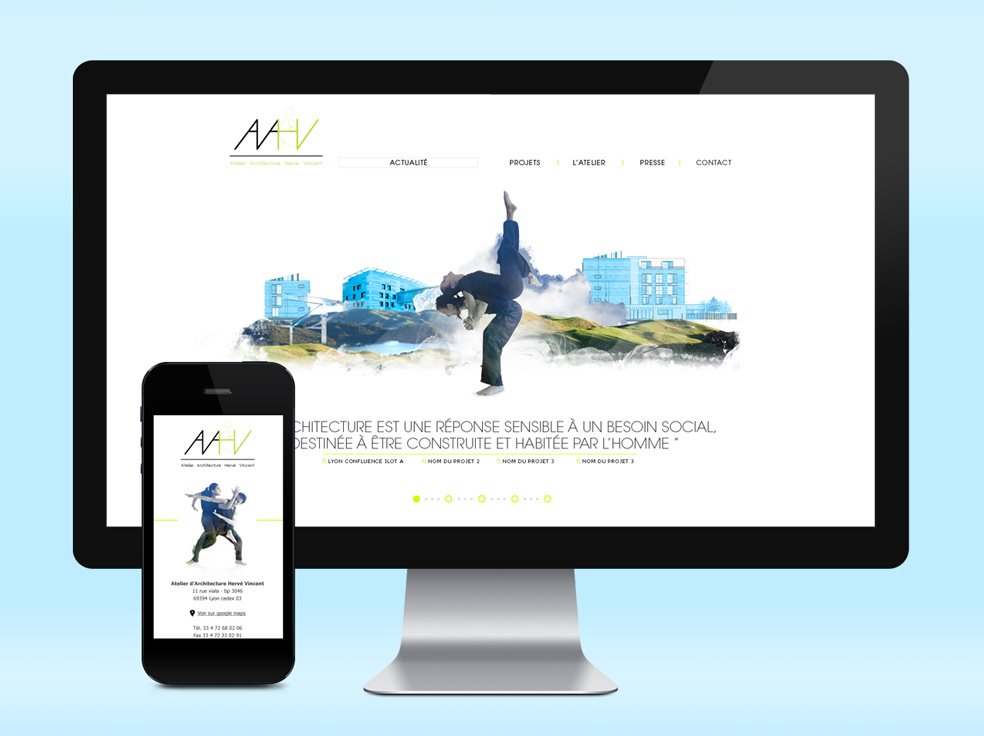 Kojak Design conçoit le site internet de l’Atelier d’architecture Hervé Vincent. Pour cette réalisation, l’agence travaille sur l’univers de la danse, source d’inspiration importante pour l’architecte, afin d’évoquer les notions « d’occupation de l’espace » et « d’espace à vivre ». L’univers graphique créé met en valeur des images de danseurs et de réalisations architecturales grâce à un site full JS, administrable via un CMS. Un site mobile a également été réalisé.