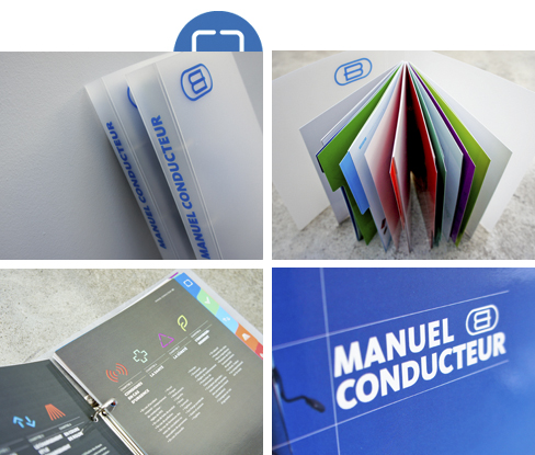 Manuel du conducteurSoucieux de la sécurité et de la santé de ses chauffeurs de poids lourds, l'entreprise Brun Invest missionne Kojak Design pour la conception et la réalisation d'un outil de communication reprenant l'ensemble des règles en matière de sécurité, de santé et de respect de l'environnement. L'agence réalise notamment un manuel facile à vivre et à lire qui prend sa place dans la totalité des cabines des chauffeurs de poids lourds en circulation de l'entreprise.