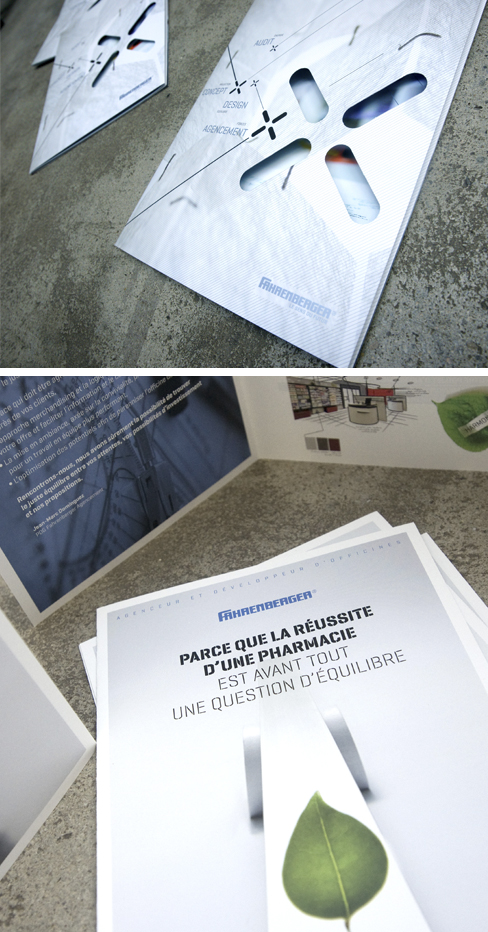 Refonte des supports de communicationLe groupe FAHRENBERGER, agenceur d’officine présent sur l’ensemble du territoire national, nous confie la refonte de sa communication : charte et papeterie, plaquette institutionnelle, présentation d’avant-projet, mailing, design du stand pour le salon Pharmagora… L’agence crée l’univers et le concept, assure conseil, rédaction et direction artistique.