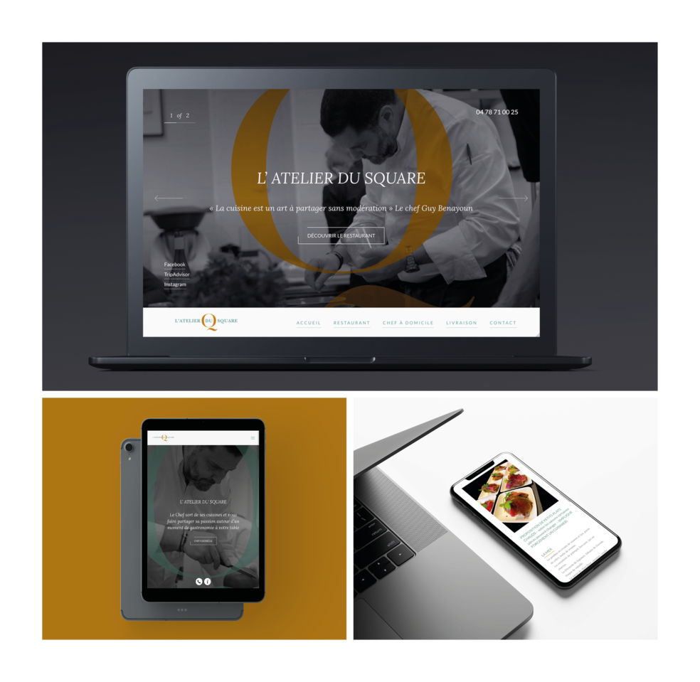Site WebL’Atelier du Square, est à la fois un laboratoire et un restaurant qui offre une cuisine qui s’inspire de rencontres avec l’homme & la nature. Les produits sont soigneusement sélectionnés auprès des producteurs et d’une agriculture raisonnable naturelle. Merci au chef Guy Benayoun de nous avoir confié la conception et la réalisation de son identité graphique et la réalisation de son site internet. Élégant, épuré, un site « gourmand » et « gourmet ».