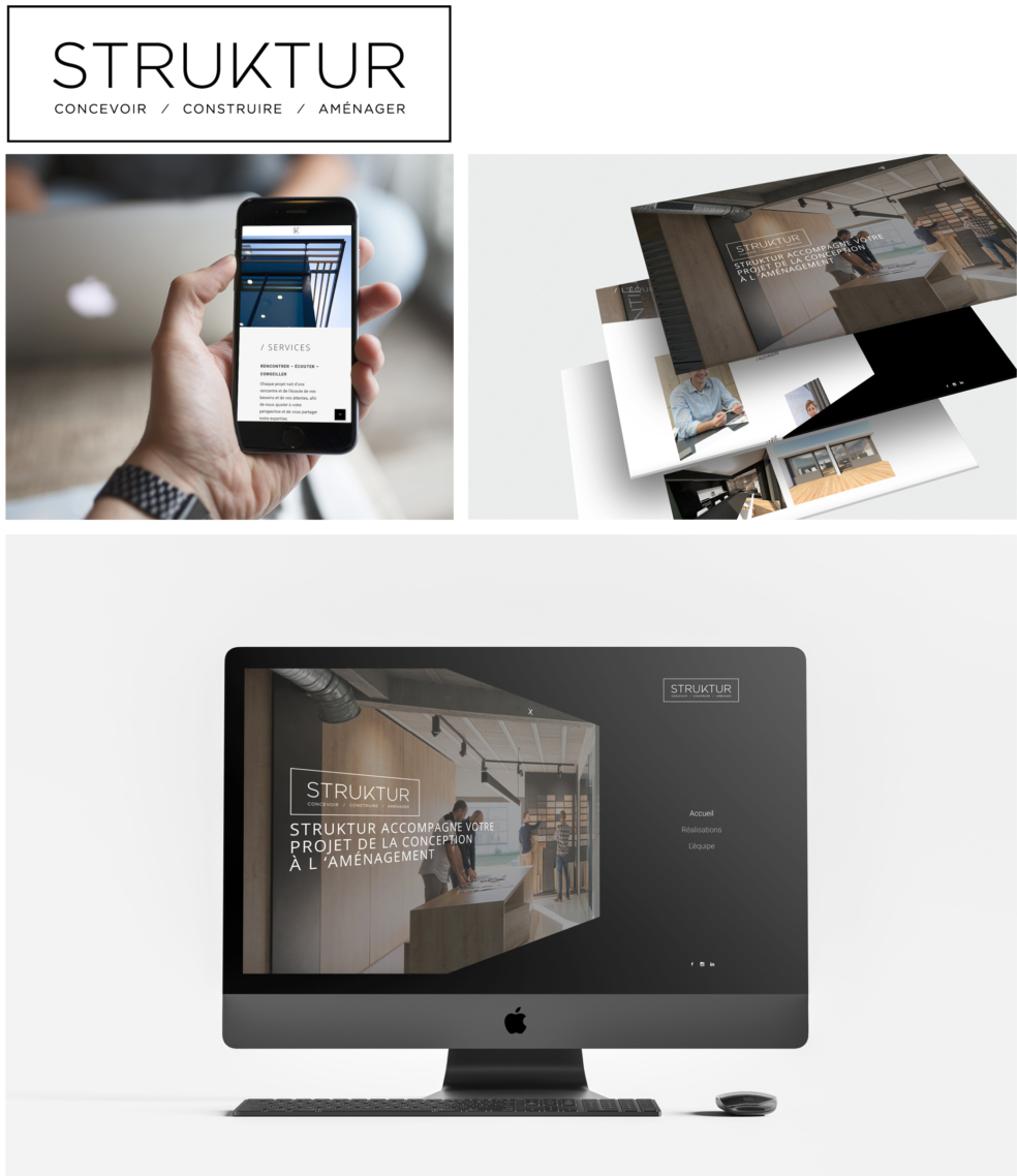 Site internetAprès avoir repensé et réalisé toute l’identité visuelle de la société STRUKTUR du logo jusqu’à la charte graphique, KOJAK, Bureau de création, poursuit avec la création du site internet.
