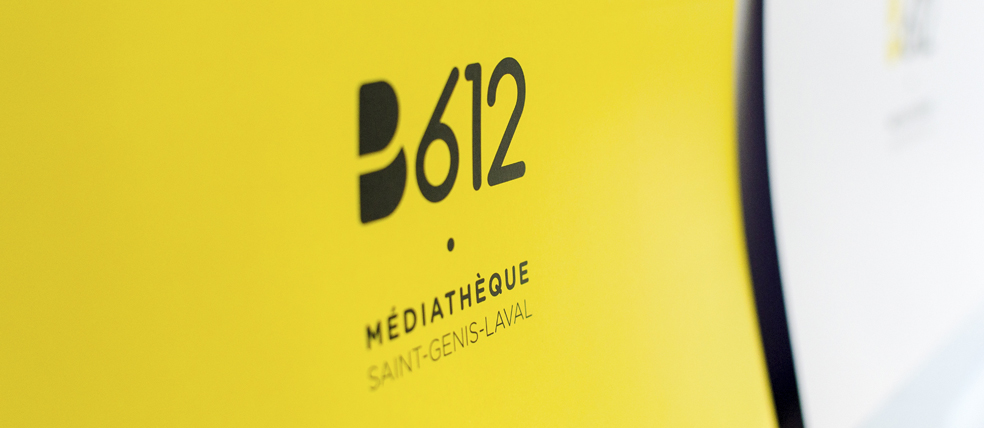 Moderne, épuré en lien avec l’origine du nom, le logo de la Médiathèque rénovée de la ville de Saint-Genis-laval fait aussi écho au théâtre de la Mouche, autre lieu culturel situé juste en face du B612.